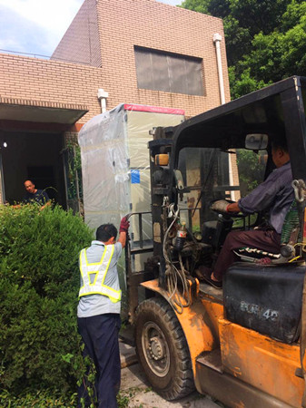 14日上午,寧向隧道實(shí)施了二類(lèi)封道,維養(yǎng)中心、黃土嶺隧道所與廠家(浙江耀明電力設(shè)備有限公司)施工人員一起,在起重吊機(jī)、叉車(chē)等機(jī)械配合拖纜下,合力將6組重達(dá)數(shù)噸配電柜等設(shè)備搬運(yùn)至配電房?jī)?nèi)并恢復(fù)了前一天拆除的護(hù)攔,等待第二天技術(shù)人員的停電安裝。同時(shí),為了第二天盡早開(kāi)工,中心和黃土嶺提前落實(shí)了油料和參與人員,并預(yù)訂了盒飯,力爭(zhēng)一天時(shí)間完成所有安裝工作。