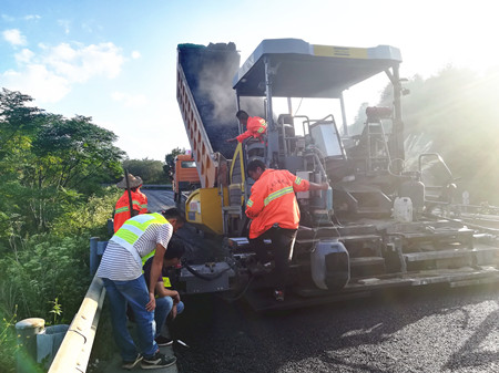 圖為攤鋪瀝青現場 隨后,江輝一行向施工方了解施工機械設施、機械班組運行狀況,以及各施工工序銜接是否到位等。江輝一再強調此項工程的緊迫性,要求在確保施工質量和施工安全的同時,加快施工進度,保證道路安全暢通。如施工中遇到封道、技術等相關問題,他希望施工方盡早提出,以便更好地銜接溝通解決。 據悉,此次路面維修專項工程計劃投入2700萬元,于9月26日進場施工,臨海南溫向入口匝道先行開展路面專項試驗段施工,目前已完成約7000平方米瀝青路段鋪設,后續工程正緊張而有序的進行中,高速路段指數提升指日可待。 李夢君