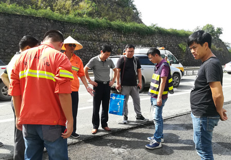 集團總工程師江輝到臨海南匝道現場查看病害