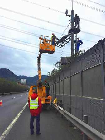 近日,集團工程養護部機電設備維養中心組織施工單位,頂著寒風冷雨對沿線有裂痕破損的云臺太陽能板進行了拆除更換,為即將到來的春運工作打下堅實的基礎。 集團路段共有36個監控云臺,它們在提高高速公路管理和服務水平上起著重要作用,當發生交通異常時,能及時確定事故并實時發布相應的誘導和救援信息,保障道路暢通,減少財產損失。維養中心在之前一次摸底排查中發現沿線有10處云臺太陽能板由于年久老化,面板晶體出現不同程度開裂破損,嚴重影響太陽能供電效果,導致監控設備無法有效運轉。