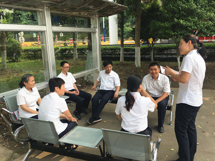 6月8日下午,臨海南收費所因辦公樓改造施工,組織員工在室外露天場地,分析、討論5月21至31日交叉稽查中發現的不規范操作業務,并確定整改措施,規范收費流程。