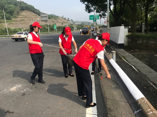 圖為志愿活動現(xiàn)場 “這邊有可樂瓶、邊溝上有塑料罐。” 另一邊由吳偉麗、周戰(zhàn)帶隊的一行女同志,對收費(fèi)所周邊互通匝道、及沿線綠化帶等區(qū)域進(jìn)行清撿。不好夾就用手撿、拾不起來就用手摳。大家發(fā)揚(yáng)不怕苦、不怕累、不怕臟的精神,一路走走停停,將收費(fèi)區(qū)域、綠化帶的塑料袋、紙巾、煙蒂等垃圾及邊溝的淤泥都被清理得干干凈凈,使得周邊區(qū)域環(huán)境煥然一新。 此次活動,大家不畏艱苦,冒著炎炎烈日,對路面垃圾清理、倒樹處理、物資搬運(yùn)等工作積極奮戰(zhàn)。經(jīng)過一個上午的通力合作,所內(nèi)及周邊環(huán)境大為改觀。 臨海南收費(fèi)所黨員們真正做到“平常時候看得出,關(guān)鍵時刻站得出”,以共產(chǎn)黨員的模范行動,挺身在前,將災(zāi)后恢復(fù)工作各項措施落到實處。 陳瑩
