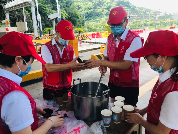 活動現場,志愿者們身穿耀眼的紅馬甲,面帶微笑,顯得格外耀眼動人。雖然大家的衣服早已被汗水浸透,但熱情周到的服務,獲得了過往司乘的紛紛點贊。臨海南收費所通過開展“夏日送清涼”活動,不僅送去了高速公路工作者的愛心,同時也拉近了與司乘人員之間的溝通交流,贏得了過往司乘人員的好評,塑造了良好的窗口形象。 除了為司乘送“清涼”,該所也真正做到把清涼送到收費一線,把關懷送到員工心坎,保障員工的健康權益,為員工提供了清涼油、克痢痧、午時茶、藿香正氣水等防暑降溫物品。食堂每天精心熬制不重樣甜湯,大家喝到提前冷涼的甜湯紛紛表示,三伏天里,雖然感到悶熱難受,但在休息的時候能喝上一碗涼涼的甜湯,真幸福。并保證一定會克服酷暑高溫,堅守崗位,盡職盡責,積極投身于收費、交通疏導工作中。