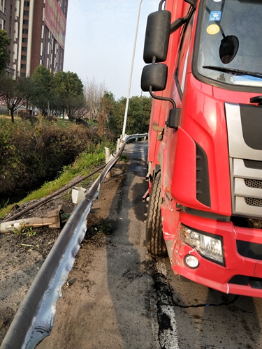 圖為貨車撞向護欄后的場景 據(jù)了解,該車從臨海北上高速,車內(nèi)只有一名司機,在錯過服務區(qū)時頗感疲乏,想著路途不是很遠,堅持會就到臺州出口了,卻在下高速時放松了精神,一下就撞到了路邊的護欄上。7號車道是該所最側(cè)邊車道,幸虧當時車速較慢,撞在護欄后停了下來,否則后果不堪設想。司機在交費后還對受撞損的護欄進行了賠償。 在此,筆者提醒廣大司機朋友們,天氣漸暖,不管在何時何地開車,一定要避免疲勞駕駛,集中精力仔細觀察道路情況,確保行車安全。 馬德偵