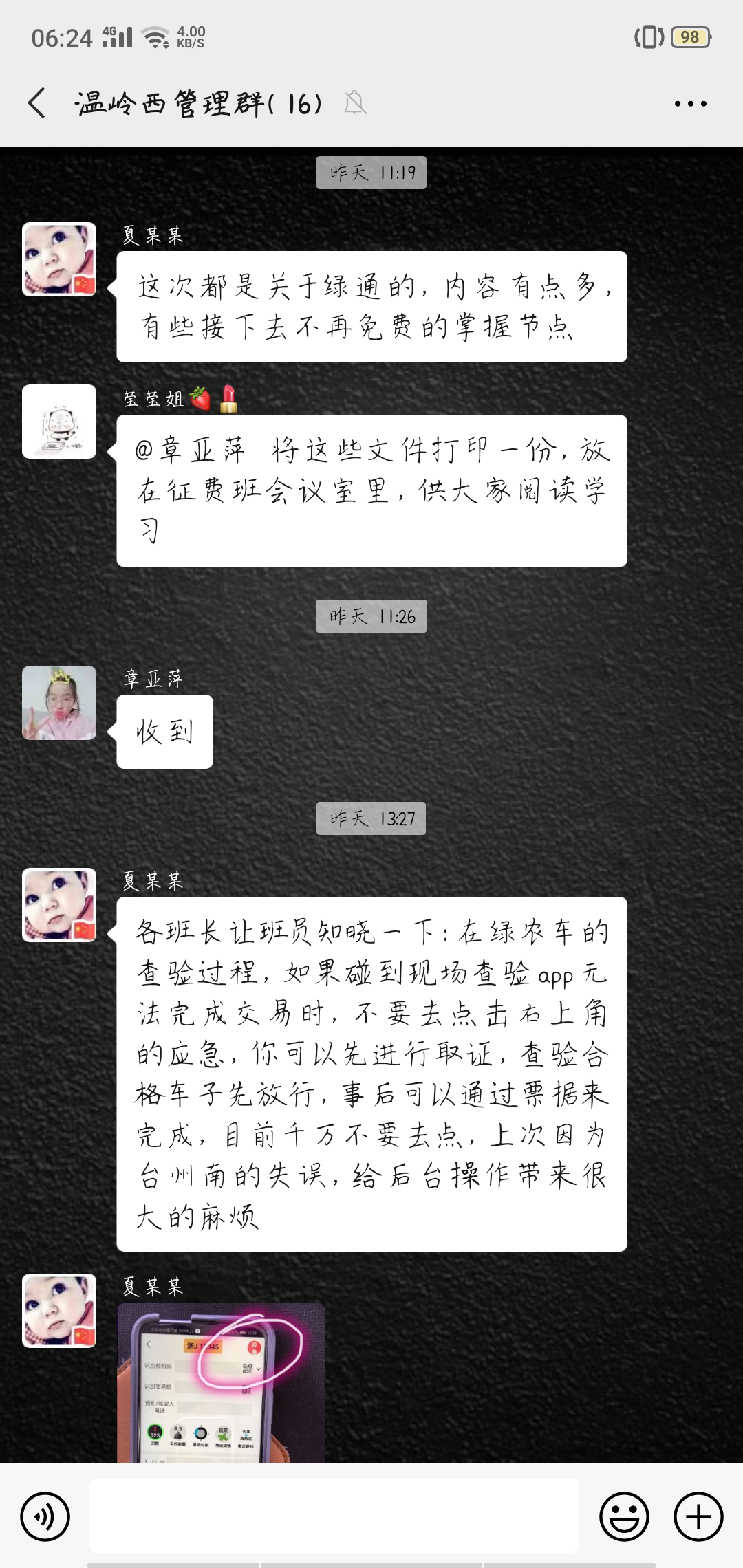 圖為需要學習的各個文件內容 培訓采取集中學習與線上學習相結合,理論知識與現場操作相結合、互動交流與相互提問相結合的方式開展,通過釘釘、微信等學習平臺,每天,各班班長組織班員開展崗前五分鐘提醒、崗后班組集中學,確保每一名收費人員能夠熟練掌握新收費系統的各項操作流程。此外,各班班長及時梳理匯總收費員們在實際操作中遇到的問題,并上傳至管理群,群中全員參與,一起討論學習。遇到無法解決的問題時,所負責人第一時間與上級主管部門溝通,以尋求最佳解決方案,并發布到群里,明確操作流程和統一相關政策解釋工作。 本次培訓不僅使全所每一位員工鞏固了前期業務知識,也更加深入掌握了收費新系統的操作流程以及新收費政策,為恢復正常收費穩步進行奠定了堅實的基礎。 鄭霞霞