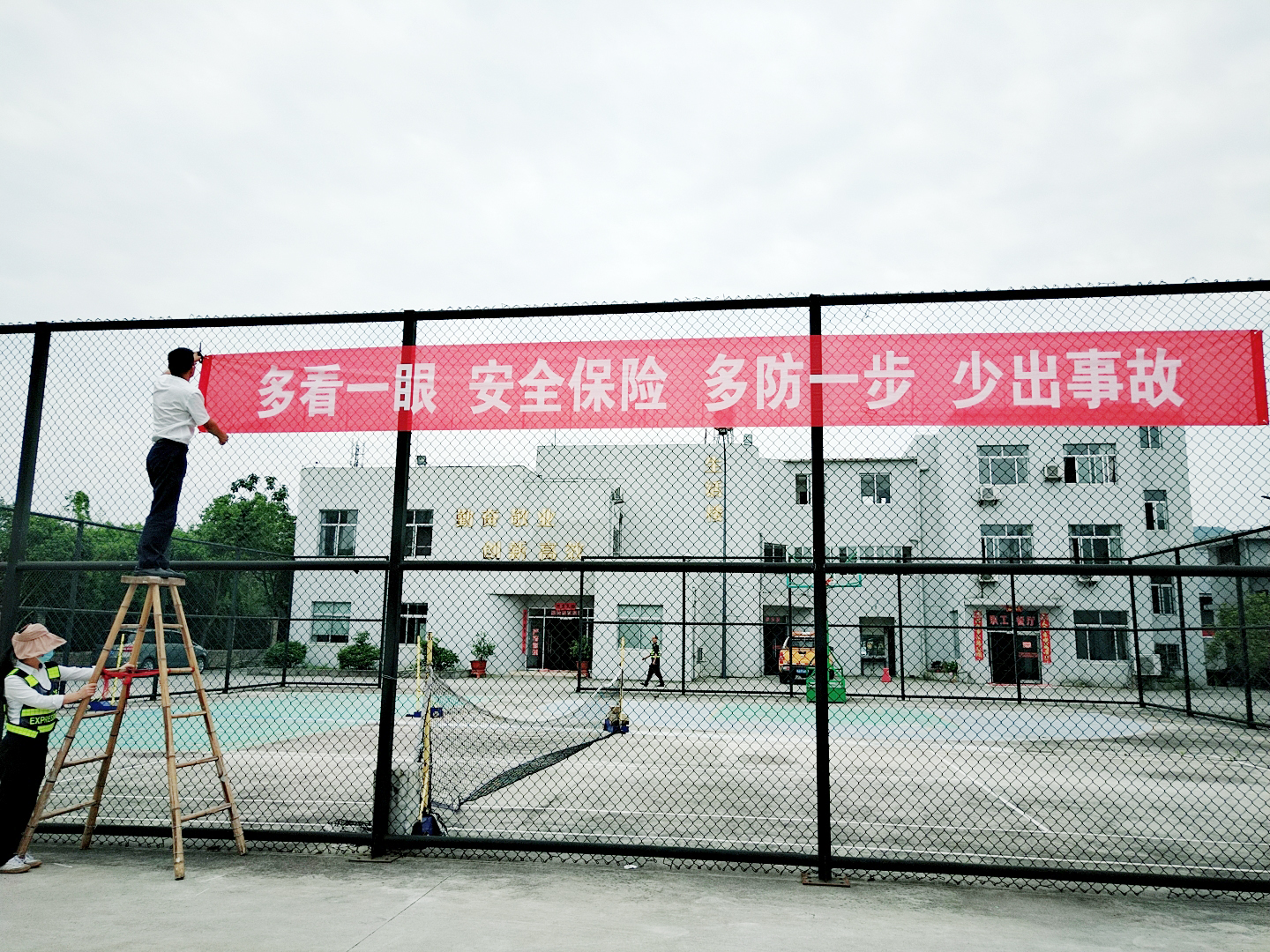 圖為懸掛安全宣傳標語