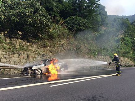 7月14日下午4點18分,一輛轎車在塘嶺隧道寧向出口一百米處自燃起火。轎車被燒成空殼,所幸火災(zāi)沒有造成人員傷亡。