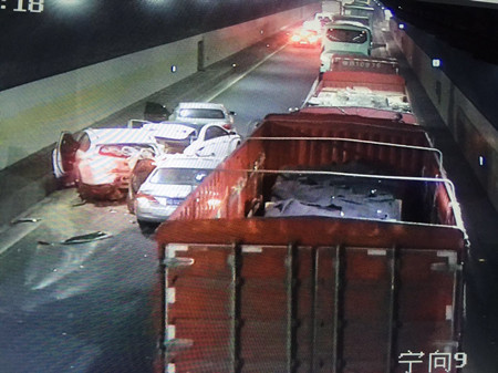 12月22日下午3:00,黃土嶺寧向隧道出口外,因兩輛大貨司機在行駛途中產生摩擦,不顧他人安危在川流不息的高速車道上大打出手,其中一名司機還在車道上逼停另外一輛大貨車,造成后續車輛被堵在隧道內,間接導致四輛轎車追尾。
