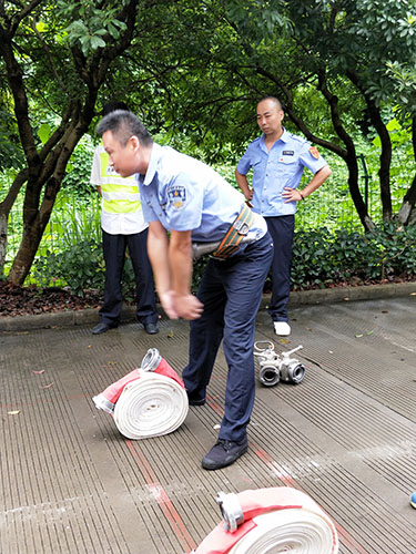 安保人員馮常敏擔(dān)任此次主講,授課內(nèi)容為兩盤水帶的鋪設(shè)和連接、連貫動(dòng)作練習(xí)。他首先進(jìn)行講解示范,并分解每一個(gè)動(dòng)作要領(lǐng)。慢慢地教新人如何操作。