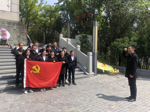 圖為重溫入黨誓詞 當天,黨員們懷著沉痛的心情來到這里,向安息的革命先烈默哀致敬,敬獻鮮花,黨員們又在黨旗下重溫入黨誓詞,之后參觀紀念館、緬懷革命先烈,重溫紅色歷史,向所有為中華民族繁榮富強做出偉大犧牲的先烈們致敬! 陳智慧