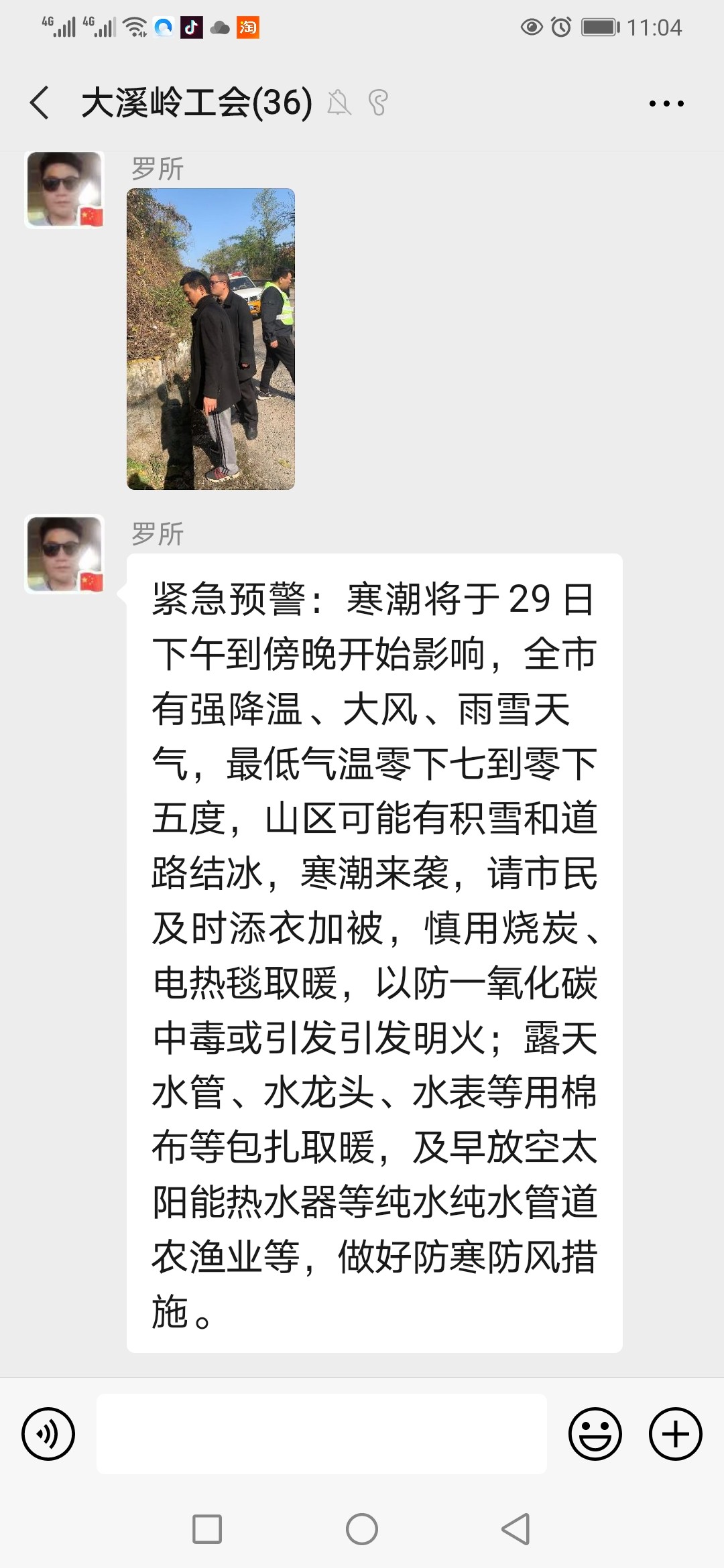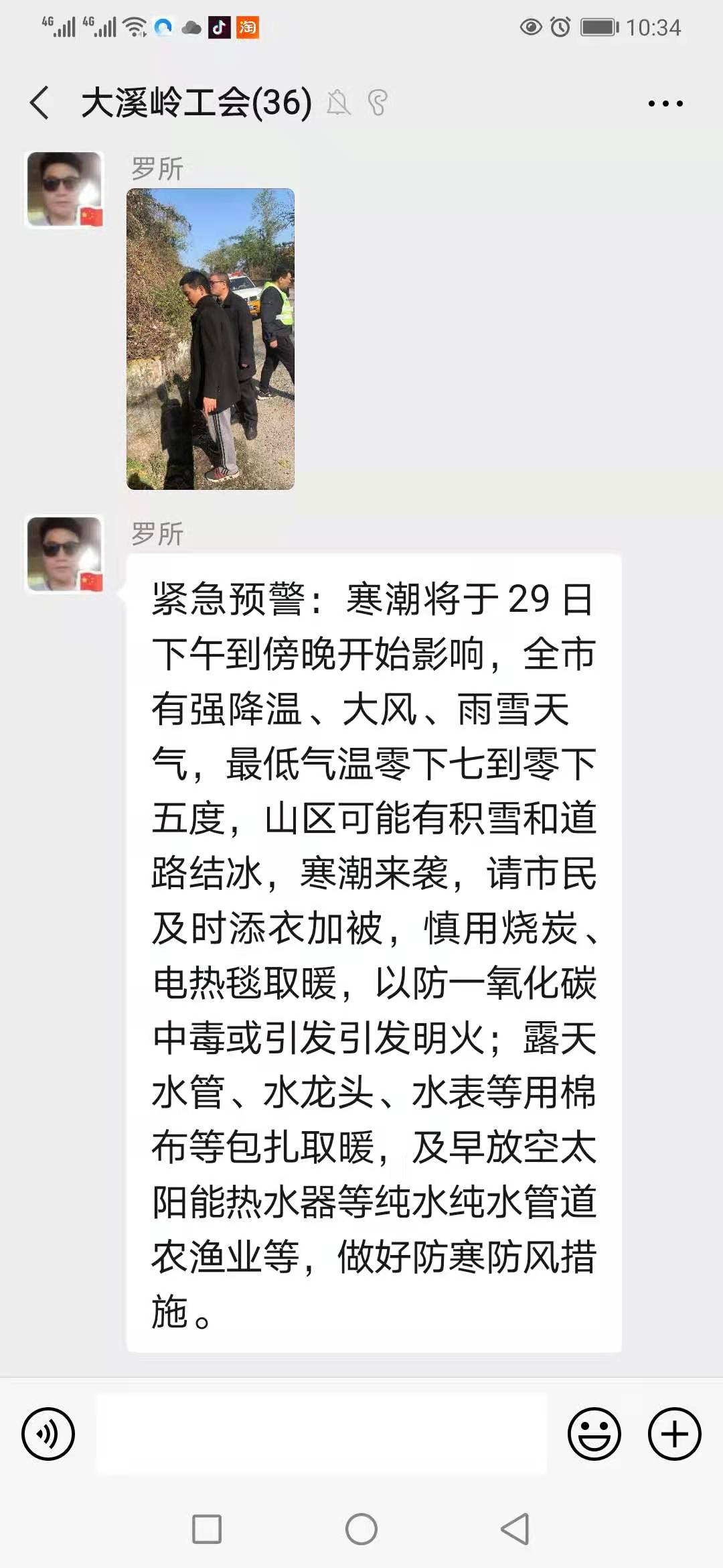 大溪嶺暖心行動還在所里的工作群中“溫馨提醒:寒潮前家中如何做好用水設備的防凍保暖”,并提醒安全用電注意事項。2020的最后幾天,希望大家都能平平安安地度過,迎接牛氣沖天的2021! 陳智慧