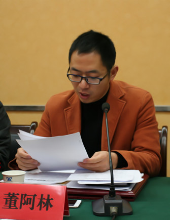 圖為副總經理董阿林宣讀文件