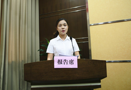 圖為公司財務總監章彩霞宣讀議案