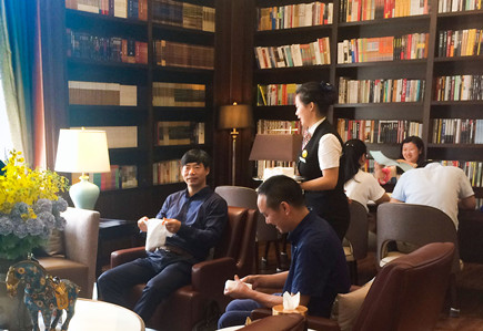 圖為雙方人員在案場(chǎng)書(shū)房洽談現(xiàn)場(chǎng)
