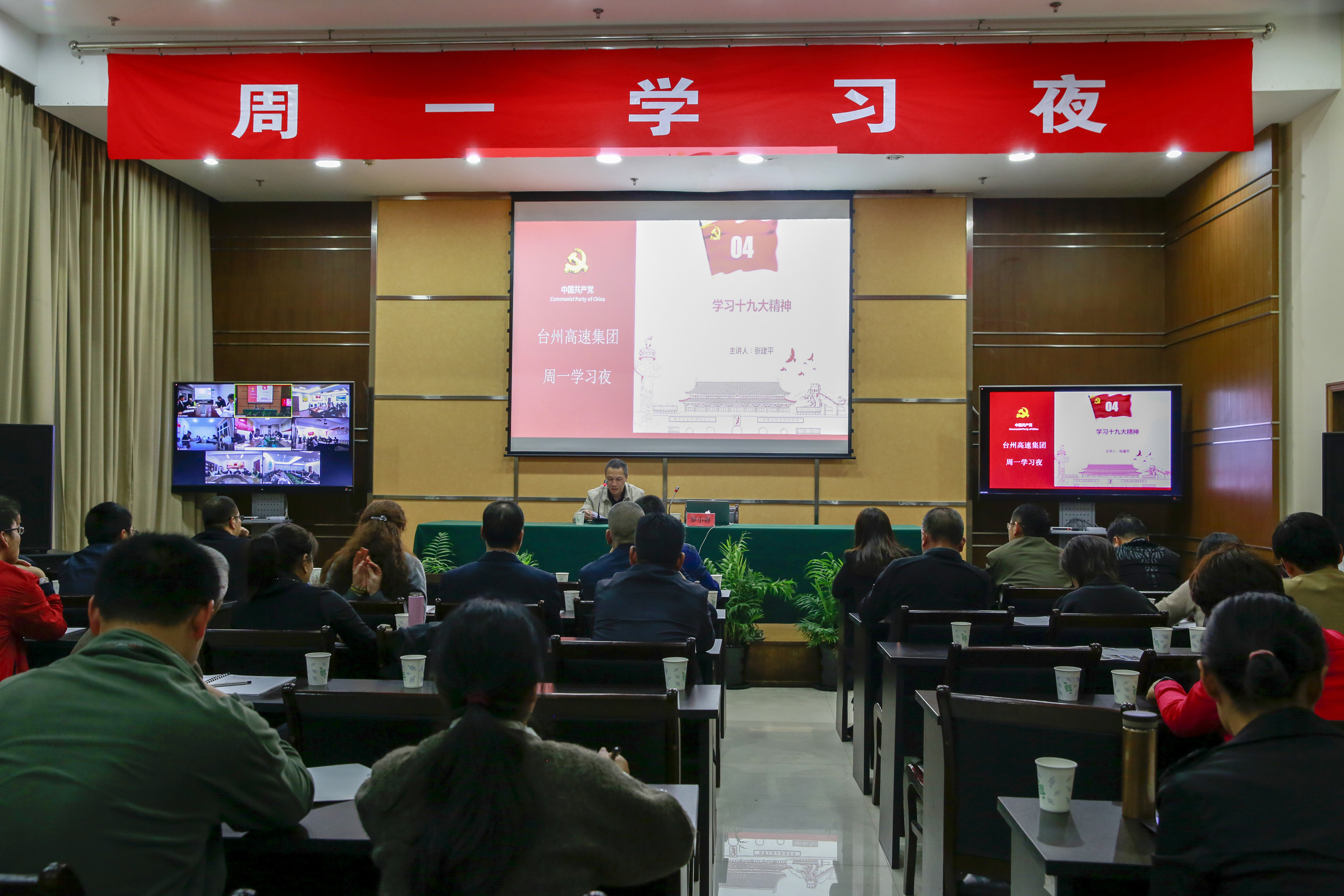 大樓、子公司全體員工參加學(xué)習(xí)夜,各所、中心的非當(dāng)班員工通過遠(yuǎn)程視頻會(huì)議系統(tǒng)同步學(xué)習(xí)。