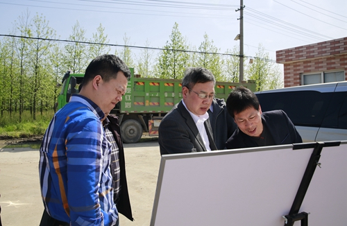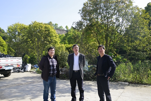 圖為公司領導陳文波在水花村考察停車區(qū)地塊