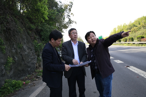 在黃巖南城互通項目規(guī)劃點位處,陳文波仔細對照項目規(guī)劃示意圖,聽取項目介紹和當前進展情況,詳細咨詢了解項目土地預審及土地報批等關鍵事項和難點問題,要求相關人員加強同交通部門、黃巖區(qū)政府對接溝通,全面摸排梳理難點,全力以赴促進項目前期報批進度,力爭早日開工。
