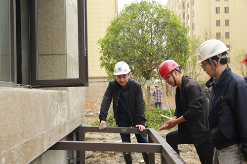 圖為公司副總經(jīng)理羅小將帶隊(duì)在文鼎苑工地檢查