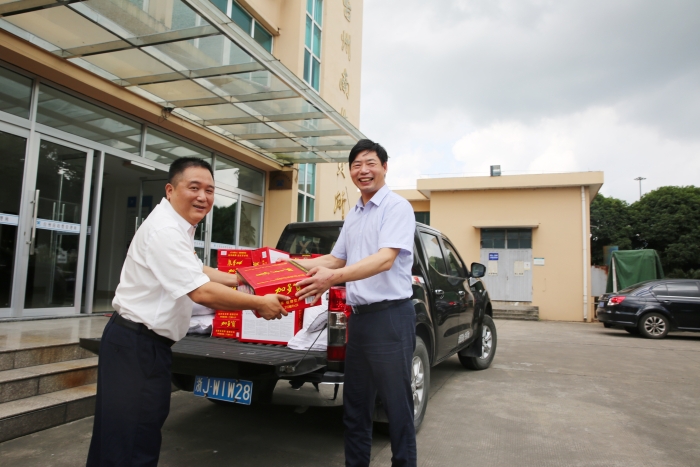 陳文波一行首先來到臺州高速公路交警總隊臺州支隊和高速路政的駐地,向他們送上了消暑物資,對他們一直以來有力維護高速公路秩序,保障本路段有序運營及高溫下堅守一線工作表示慰問和感謝,也請他們繼續支持公司工作,確保高速公路安全暢通。