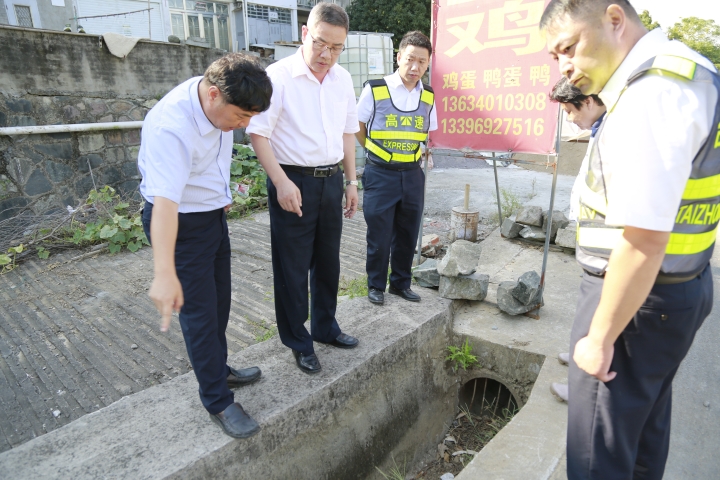 圖為陳文波檢查臺州收費站內廣場隔離墻