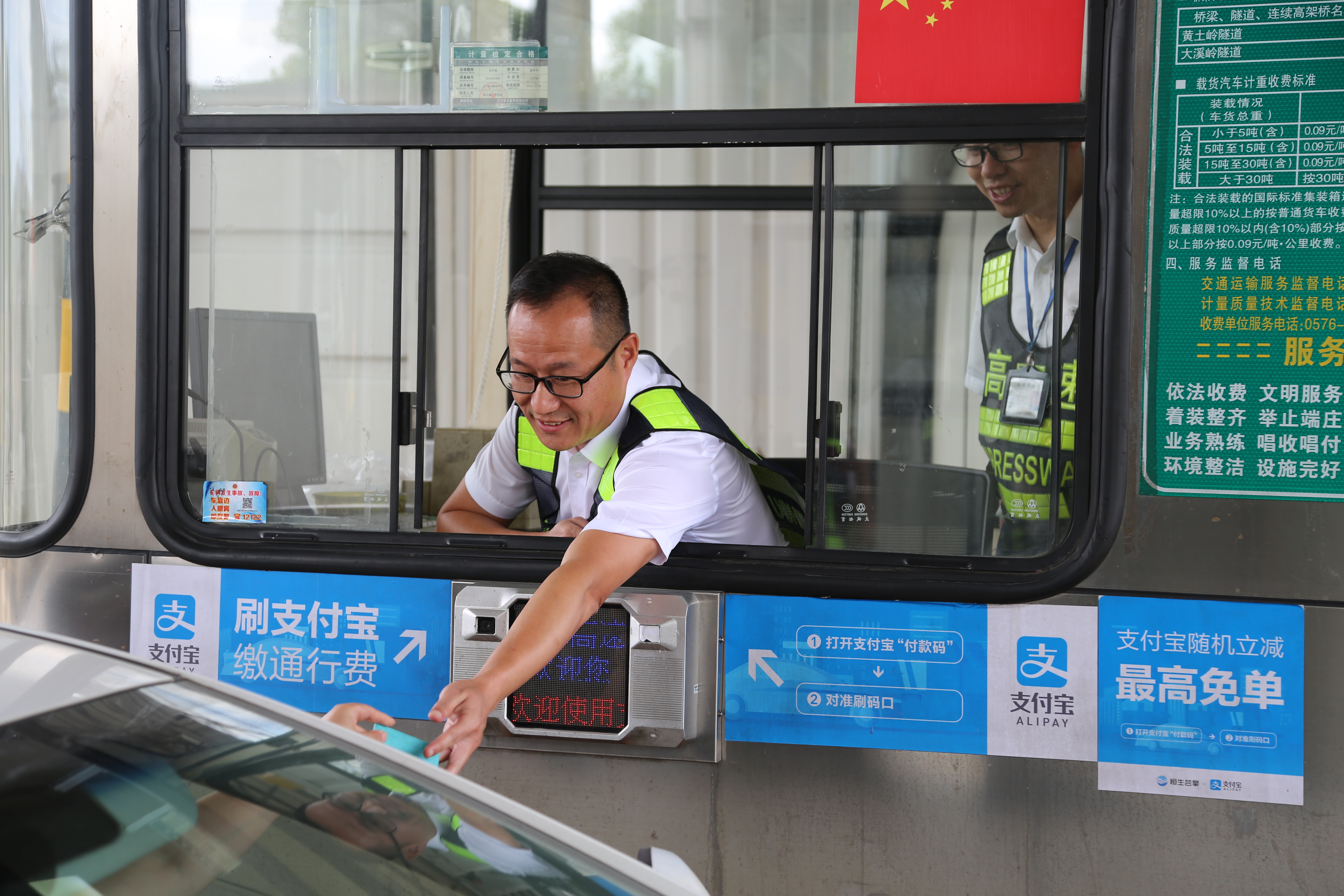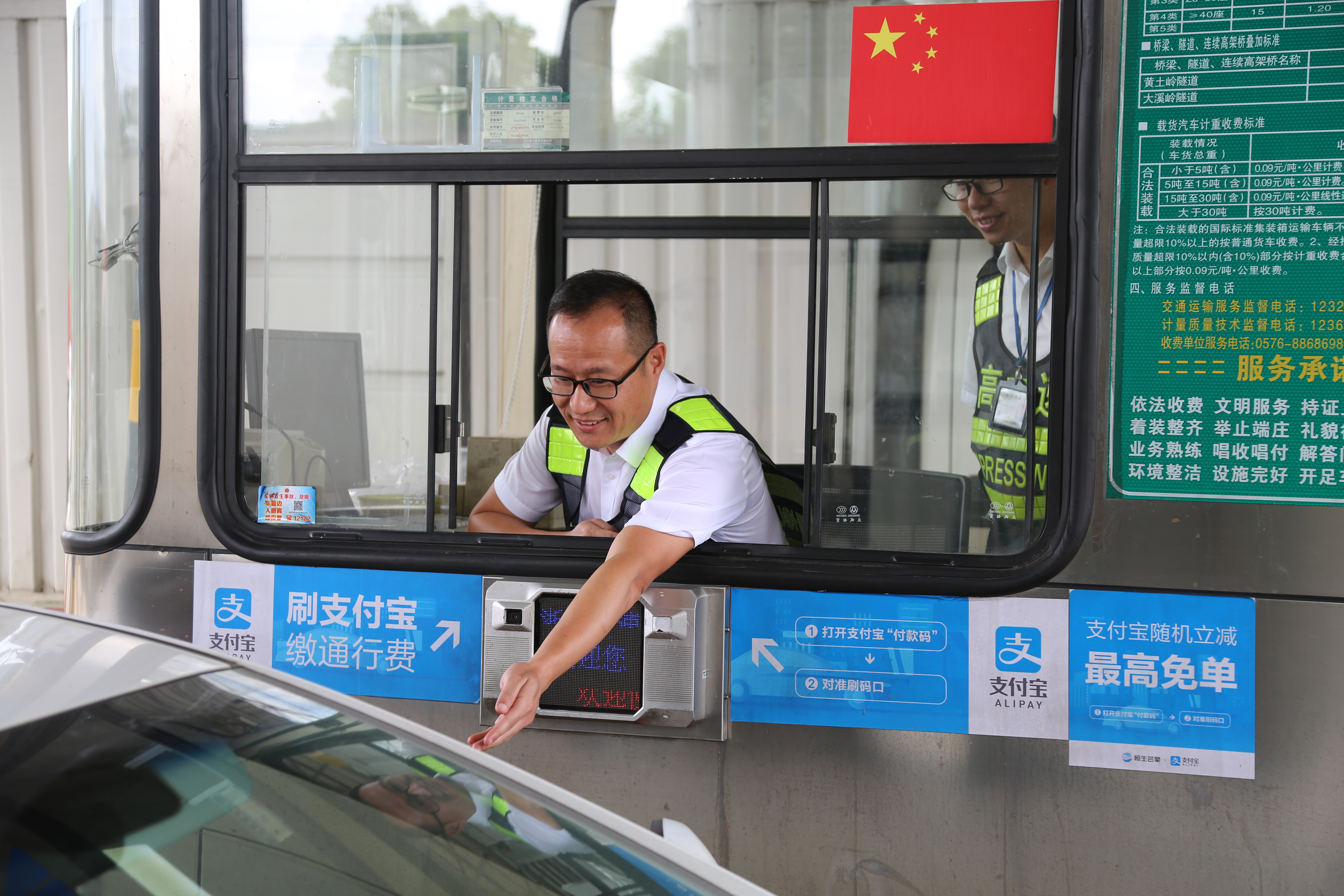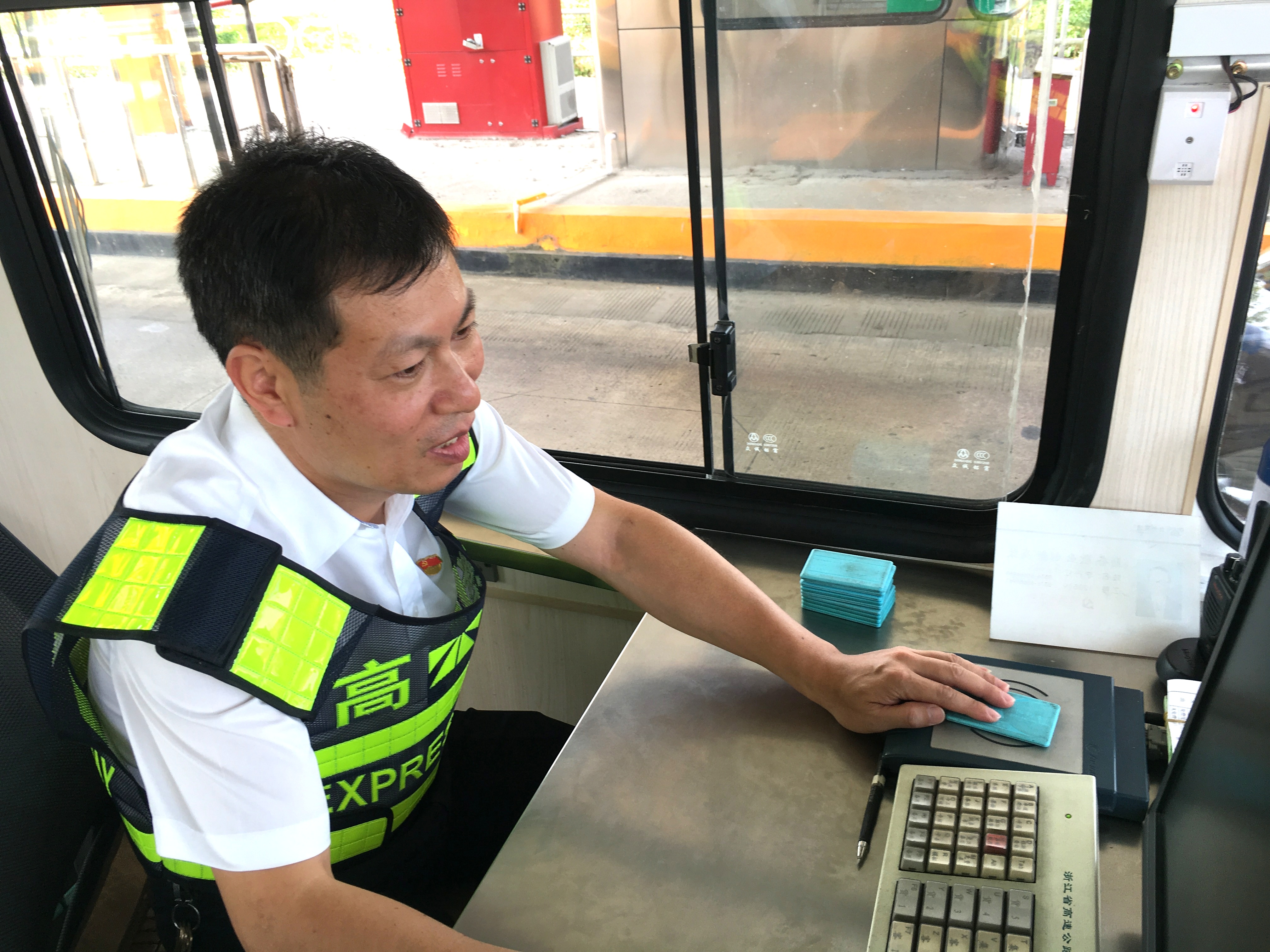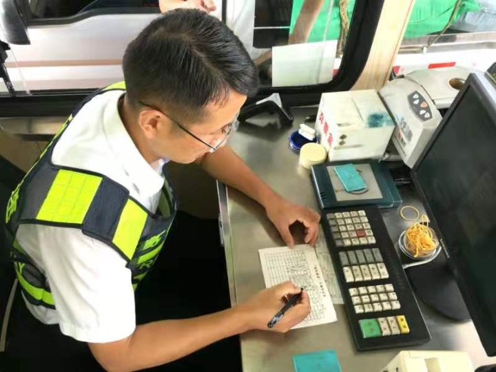 而在對(duì)面發(fā)卡的安全總監(jiān)項(xiàng)同富正襟危坐,等待著車子的駛?cè)耄?/span>“記住動(dòng)作就忘記微笑,笑起來(lái)又忘記要說(shuō)什么......真有點(diǎn)手忙腳亂的,做好收費(fèi)員,不容易。”
