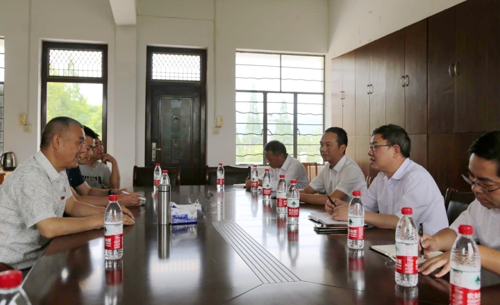 圖為陳文波與村兩委班子以及駐村指導員座談交流 在塘上村的村委會會議室里,陳文波與村兩委班子以及駐村指導員進行座談交流。塘上村村支書、村長,以及其他村干部分別向陳文波等介紹了村里近期的基礎設施建設、村民生產生活、產業扶貧措施、文化禮堂建設等工作中的重點難點問題,同時代表村民感謝臺州高速集團長期以來對塘上村的支持和幫助。