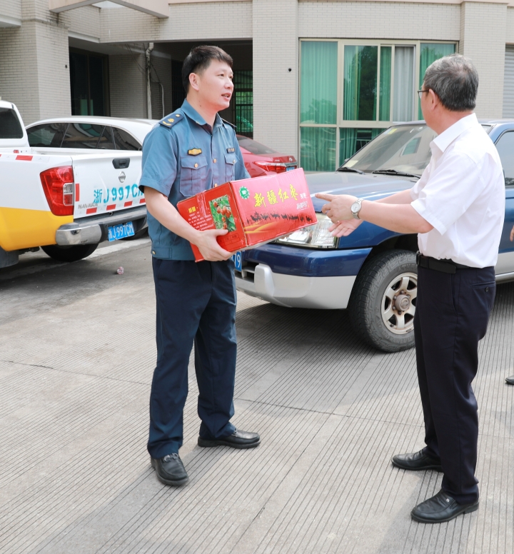 沁人心脾|臺州高速集團開展“夏日送清涼”活動 7月15日上午,臺州高速集團開展“夏日送清涼”活動。集團黨委書記、董事長、總經(jīng)理陳文波,副總經(jīng)理陳保衛(wèi)、羅小將、章海峰、工會主席項同富兵分兩路,帶領(lǐng)送清涼慰問組同志,深入高速交警、路政、匯通養(yǎng)護公司、各收費所、隧道所、中心、子公司等單位看望慰問值守人員并送去慰問品,向冒著高溫酷暑辛勤工作的工作人員表示敬意和慰問。感謝廣大員工在高溫下堅守崗位、辛勤勞動,集團領(lǐng)導(dǎo)親手送上防暑降溫的紅棗、綠豆、蓮子、飲料等物資,為在炎炎夏日中堅持工作的一線廣大人員送去了絲絲清涼。
