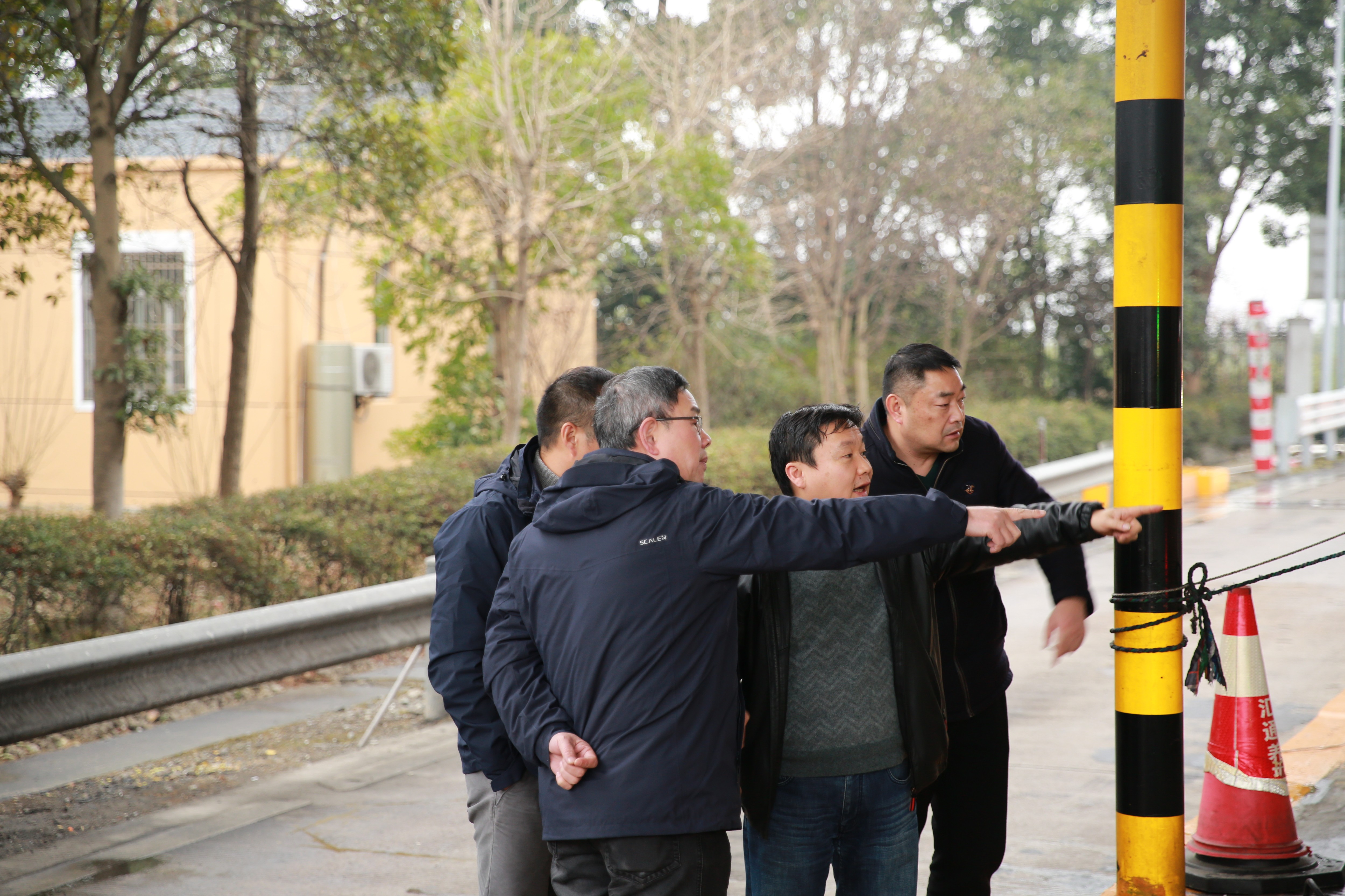 1月20日下午,臺(tái)州高速集團(tuán)黨委書(shū)記、董事長(zhǎng)、總經(jīng)理陳文波趕往臨海南收費(fèi)所,現(xiàn)場(chǎng)指導(dǎo)1月19日深夜大貨車撞倒收費(fèi)崗?fù)さ暮罄m(xù)維修工作。集團(tuán)副總經(jīng)理章海峰,工程養(yǎng)護(hù)部、安保部負(fù)責(zé)人陪同。 事發(fā)現(xiàn)場(chǎng),各種破損之物于昨晚深夜就已被清理干凈,被撞的1號(hào)崗?fù)の恢弥皇O侣懵兜母鞣N電線,以及被截?cái)嗟姆雷仓j愇牟ㄟ叢榭船F(xiàn)場(chǎng)情況,邊同維養(yǎng)技術(shù)人員就如何加強(qiáng)收費(fèi)崗?fù)ぐ踩禂?shù)展開(kāi)商討,并提出有關(guān)建議。