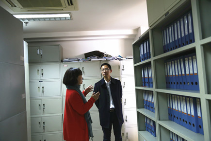 圖為公司副總經理董阿林檢查工程部檔案室