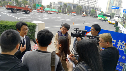 圖為記者在收費站附近采訪當晚征費四班值班班長鄭星 “那天晚上,原本只開1號、3號、4號三個車道的,因為該駕駛員鬧事,為保證通行秩序,收費站后來先后加開2號、5號車道?!痹谀峭碇蛋嗟恼髻M四班班長鄭星告訴大家。駕駛員對免通行政策、免通行時間段還存在誤解的情況,之前收費站也存在過駕駛員拒付通行費的現象,但沒有像此次拒付時間長、影響又惡劣的。