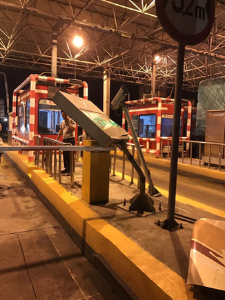 當晚事故接連不斷。晚上22點40分,臺州收費所ETC進口處,一輛大客車行李車門撞歪顯示屏,同時也撞壞了一只抓拍攝像頭,造成了較大的路產(chǎn)損失,但是當班員工都正在路面上施救,施救中心領導統(tǒng)籌部署,通知兩位在所非當班人員赴崗上班,緊急出動,發(fā)揮連續(xù)作戰(zhàn)精神,進行及時處理。