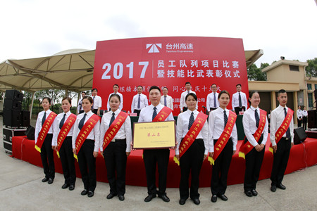 “立正、向后轉(zhuǎn)、齊步走、正步走……”10月19日下午,臺州收費(fèi)所管理房廣場上,伴隨著一聲聲嘹亮的口號,傳來一陣陣整齊有力的步伐聲。6支收費(fèi)所、隧道所代表隊(duì),正在場上進(jìn)行緊張的隊(duì)列比賽。最后經(jīng)過激烈角逐,溫嶺西收費(fèi)所代表隊(duì)獲得了隊(duì)列項(xiàng)目的第一名。隨后,集團(tuán)舉行了以“煉精本領(lǐng)保暢通、同心共慶十九大”為主題的員工技能比武總結(jié)表彰儀式,對在技能比武獲獎(jiǎng)的員工和集體進(jìn)行了隆重表彰!