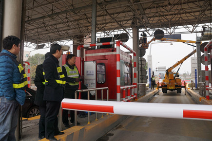 江輝一行首先來到臺州收費站,查看ETC高清抓拍及內外廣場攝像頭安裝情況,對現場安裝人員近階段不顧嚴寒天氣,奮力搶修的積極工作態度表示感謝,并一再叮囑趕工的同時要做好自身的抗寒保暖。江輝還在現場咨詢了解該收費站兩臺自助發卡機運行情況,并親自對司乘人員取卡等使用流程進行規范化指導。