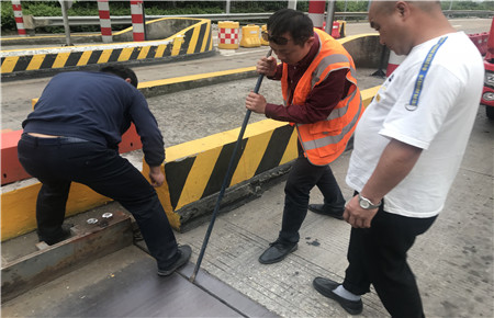 圖為工作人員檢修車道 面對大分流,我們準備好了。 堅持問題導向,突出重點出實效。臨海南收費所成為主分流點,但是該所平時流量小,出口車道僅為三個,而且人員相對不足。如何解決?征費部牽頭,召集各收費所針對問題作了動員部署。應對措施主要為“設備先行,人員輔之”。其一臨海南進口車道將改為出口,增加出口車道;其二,人力支援,其他三個收費所充分發揮協作精神,每班次抽調人員支援充實臨海南收費力量,協助分流保暢。