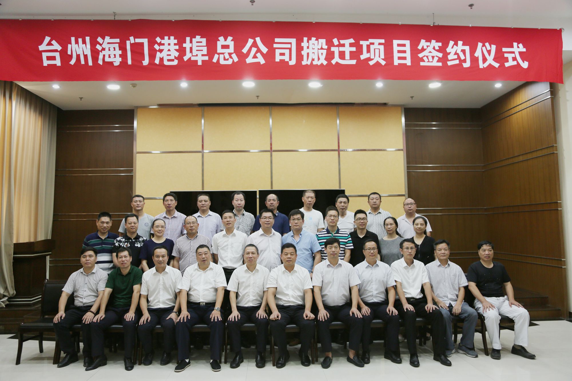 隨后雙方合影留念,港航局副局長陳安、臺州高速集團領導班子、港埠公司領導班子、新合資公司領導班子及部分各單位中層干部等人員參加會議。