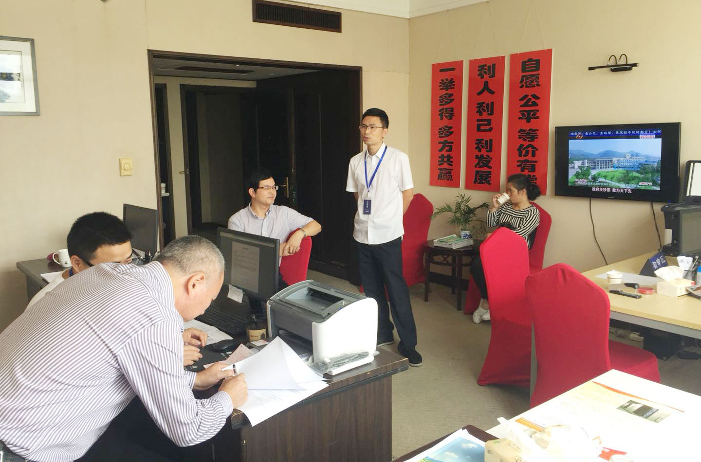 圖為臺(tái)州市政府副秘書(shū)長(zhǎng)蘇元蓬走訪三門股權(quán)收購(gòu)點(diǎn)