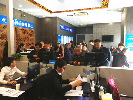10月31日當(dāng)天,全市各收購點(diǎn)股東絡(luò)繹不絕,股東轉(zhuǎn)讓熱情高漲,場(chǎng)面尤其火爆。當(dāng)天下午,收購時(shí)間點(diǎn)過后,還有股東在收購點(diǎn)辦理轉(zhuǎn)讓手續(xù)。