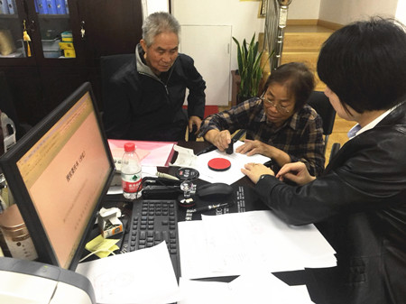 圖為椒江收購點(diǎn)現(xiàn)場 不巧的是,剛好收購點(diǎn)的股東特別多,輪到老兩口辦理得等待些時間,正好他們可以坐著仔細(xì)看看收購點(diǎn)的各類宣傳資料,等待中友好而耐心。 當(dāng)問及王阿姨是哪年購買臺州高速股權(quán)的,她邊說邊小心地拿出一張一張發(fā)黃的原始資料,“可早啦,94年買的呢,估計你那時都還沒上學(xué)呢。”原來她是替臺州市椒江星明實(shí)業(yè)總公司辦理法人股轉(zhuǎn)讓的。作為工作多年的財務(wù)人員,她對待每個辦理環(huán)節(jié)都甚是仔細(xì)。架著一副老花眼鏡的她,坐在工作人員的身旁,耐心地問清轉(zhuǎn)讓疑問,逐字地看著股權(quán)轉(zhuǎn)讓協(xié)議書,認(rèn)真地填好股權(quán)轉(zhuǎn)讓款單,不管是簽字還是蓋章都不慌不忙。 “年輕人,你們可也得把資料看看仔細(xì),如果出差錯讓我再來,那可得你們準(zhǔn)備好出場費(fèi)請我來哦。”王阿姨開著玩笑對工作人員說道。 陳林偉