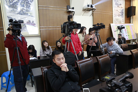 圖為各大媒體記者嚴陣以待