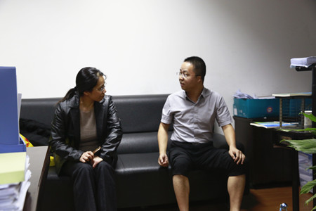 圖為當晚,辦公室負責人與股東溝通股權轉讓事宜
