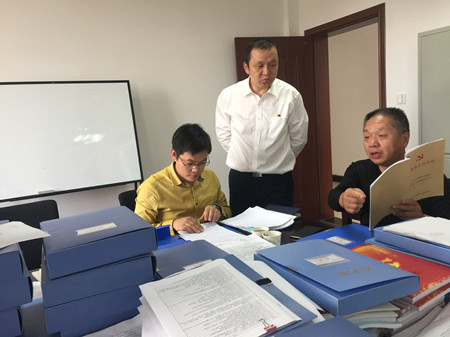 圖為檢查黨建臺賬現(xiàn)場