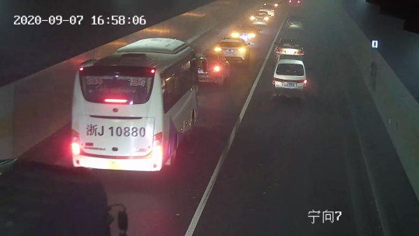 車子剛進入隧道,火眼金睛的中控員徐海源立即察覺,鎖定該畫面,經(jīng)過仔細(xì)辨認(rèn),該車沒有火光源,可能是車輛故障導(dǎo)致的。由于貨車不停地冒出濃煙,散發(fā)的濃煙彌漫在整個隧道里,造成隧道內(nèi)的車輛視線不清,人員呼吸困難,后方途經(jīng)車輛紛紛打開雙閃燈,或緩行、或停車、或避讓,一時間,交通秩序混亂,大量的車輛滯留在隧道里,而后方來車越來越多,情況越來越緊急。中控員見狀,第一時間向監(jiān)控中心匯報情況,監(jiān)控中心要求密切關(guān)注該輛車的行駛情況,同時,把該情況報告給執(zhí)勤隊長蔡星,他要求中控員打開寧向排風(fēng)扇,正向排風(fēng),疏散濃煙,同時做好應(yīng)急準(zhǔn)備工作。